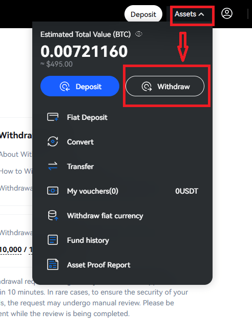 Step Five: Input and confirm the withdrawal amount. Make sure it meets the minimum withdrawal limit for that asset.