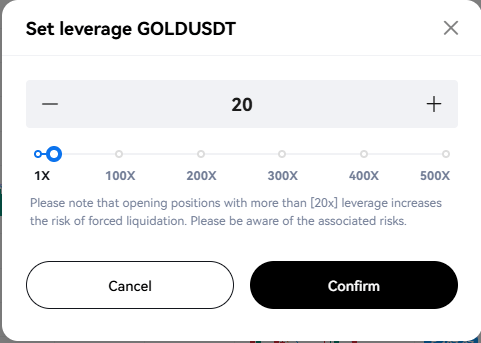 Please keep in mind that operating leverage carries the risk of liquidation. Leverage should be adjusted based on your financial status and risk tolerance.