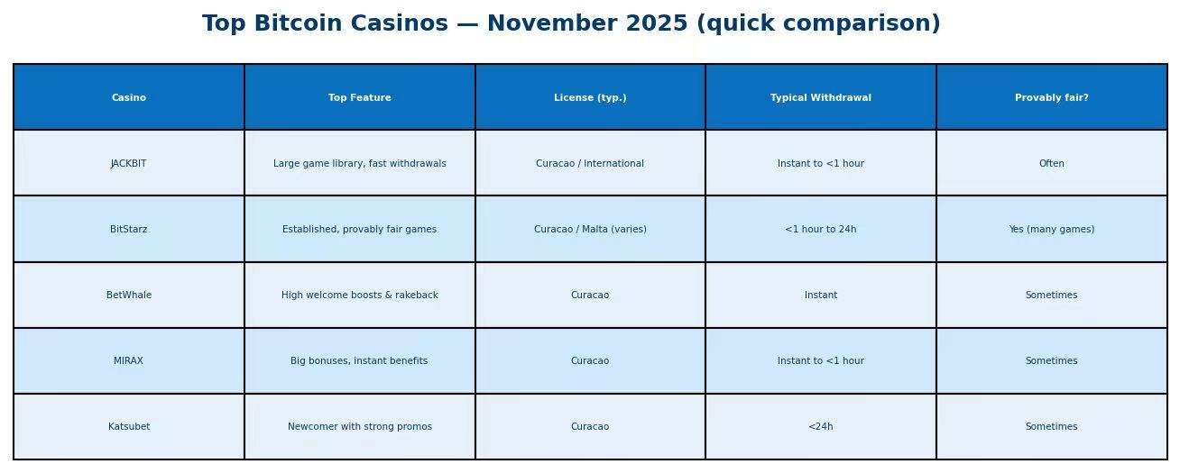 Bitcoin casinos are no longer the “wild west.” In 2025, top brands like JACKBIT and BitStarz deliver audited games, transparent payments, and sub-hour withdrawals.