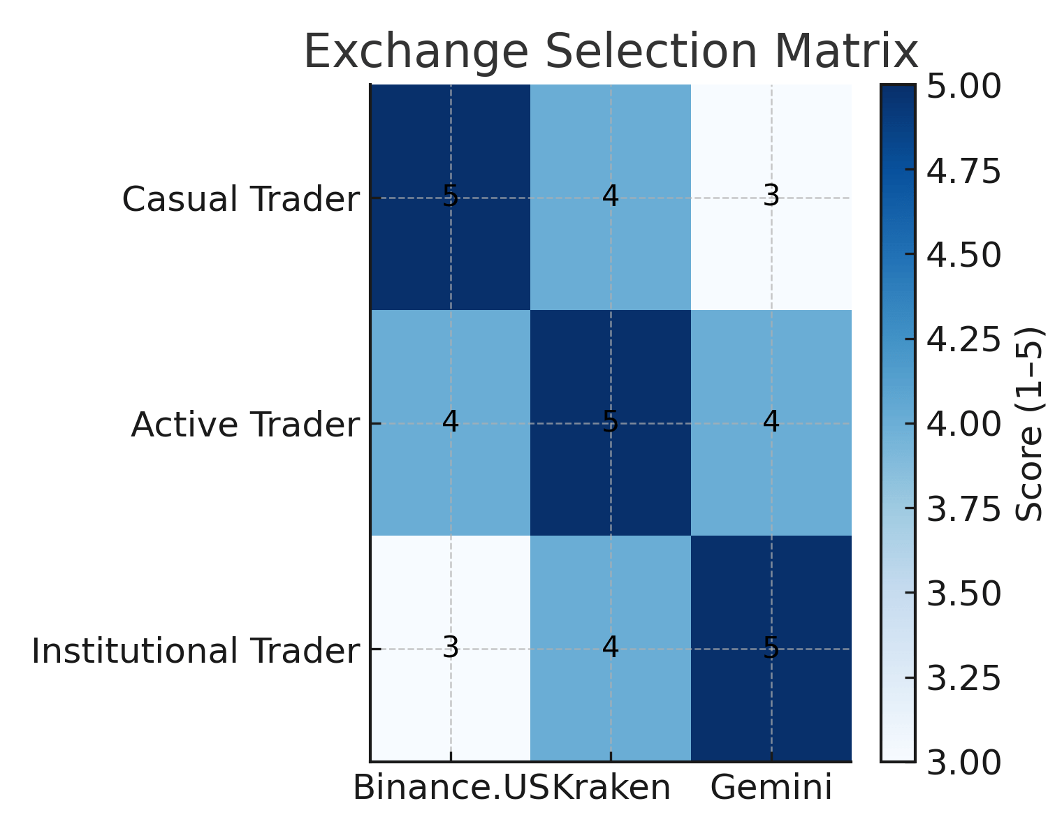 Gemini remains the most regulated (NYDFS). Binance.US and Kraken are licensed MSBs, both undergoing enhanced compliance reviews.