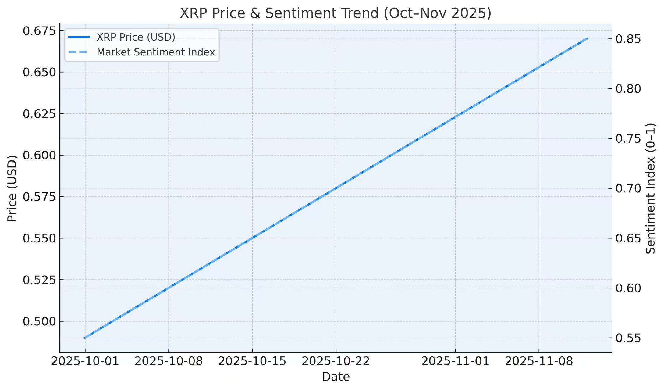 Between Oct 1 and Nov 12, 2025, XRP’s market price rose gradually from $0.49 to $0.67, representing a 36% increase amid ETF optimism.