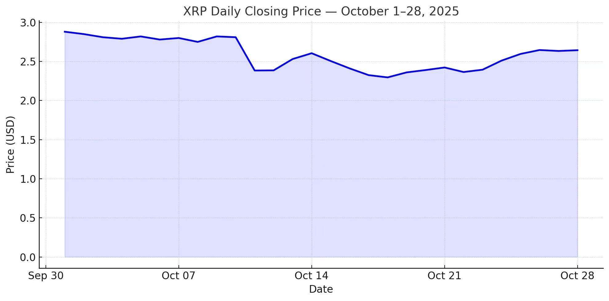 Below is the blue-themed chart showing XRP’s daily closing prices in October 2025. You can use it to visualize how XRP behaved before November’s potential volatility window:
