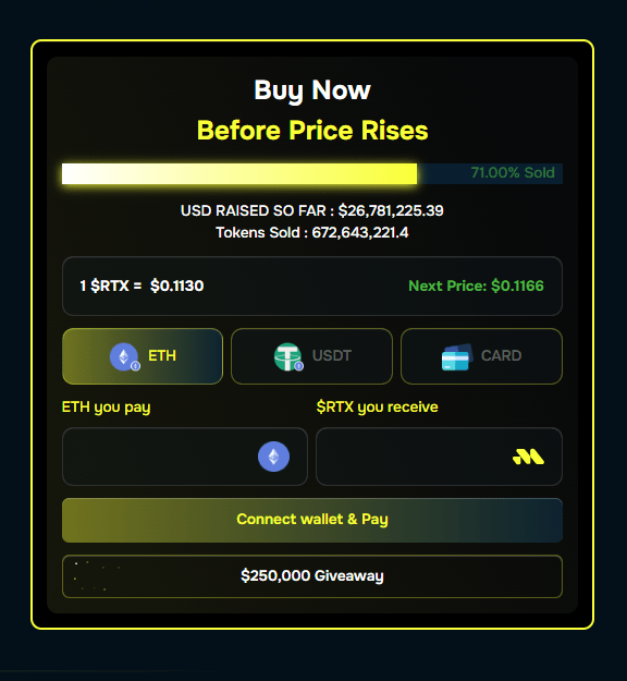 As $RTX remains under its presale period, there are currently no definitive technical indicators available to forecast its future price trajectory. However, by examining broader market dynamics in conjunction with the project’s core concept, we can gain some insight into how the token might perform upon its eventual listing on exchanges.