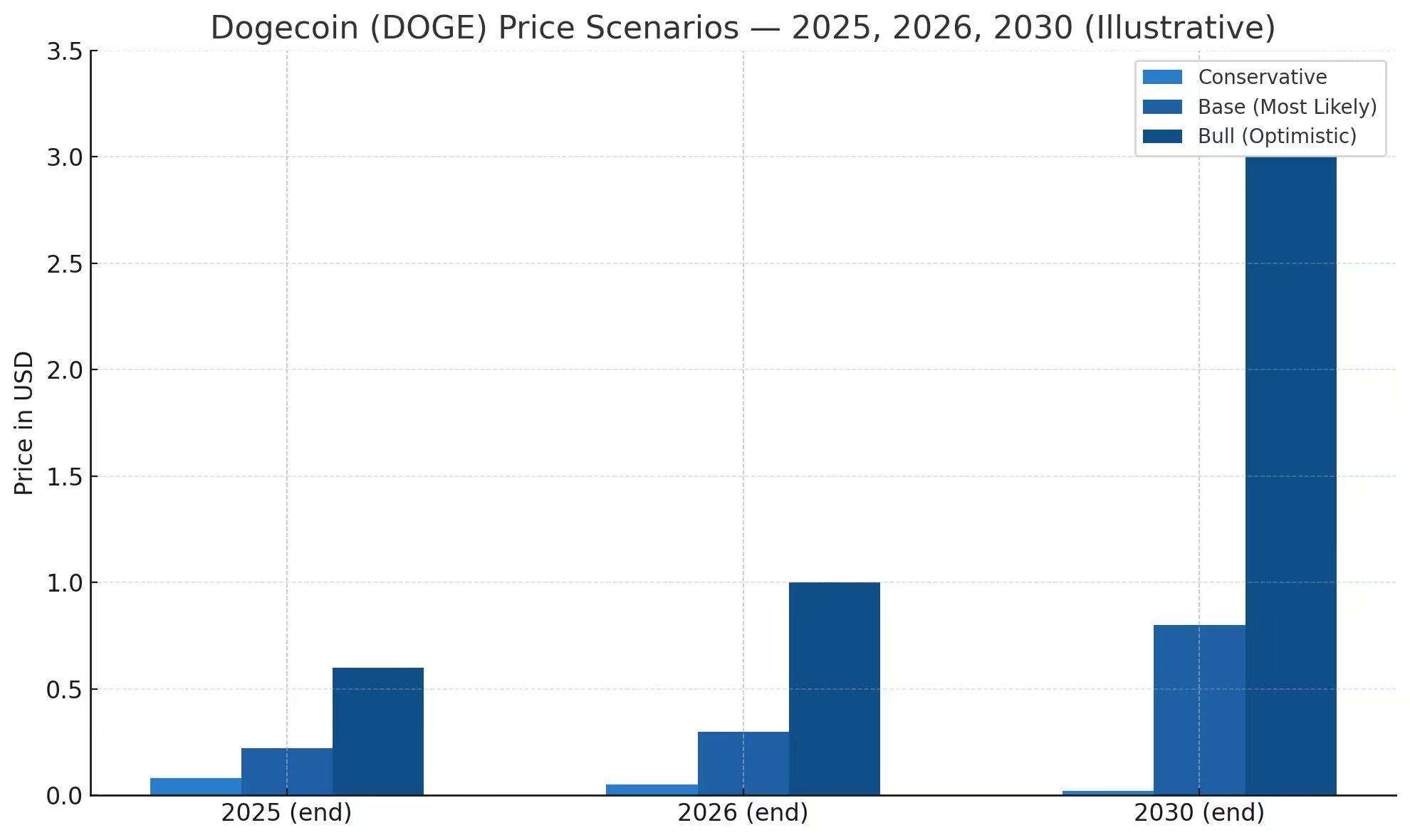 - Dogecoin Price Scenarios for 2025, 2026, and 2030