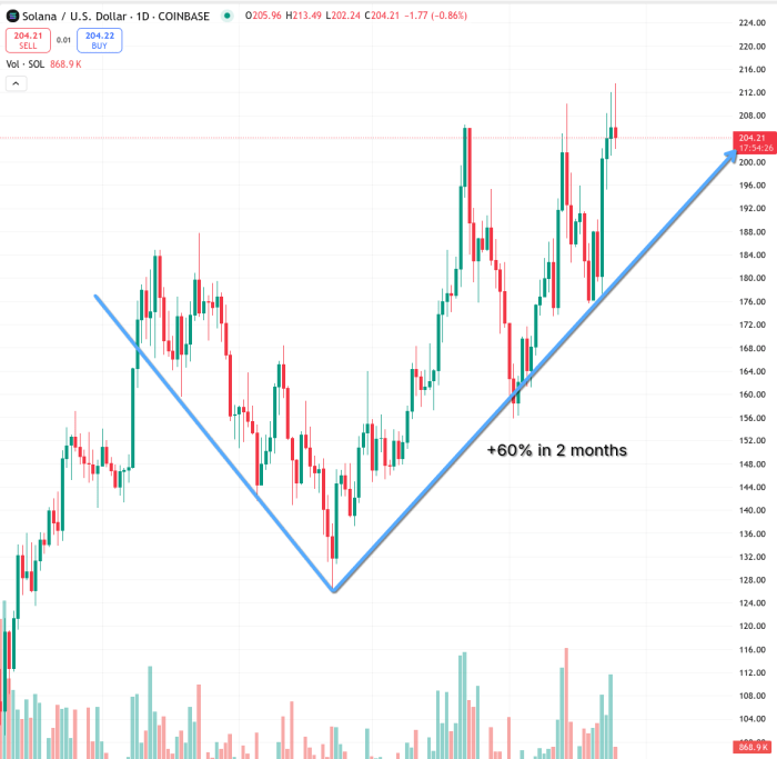 Even X Trader Ali sees a $222 target next if $SOL can break through $211.