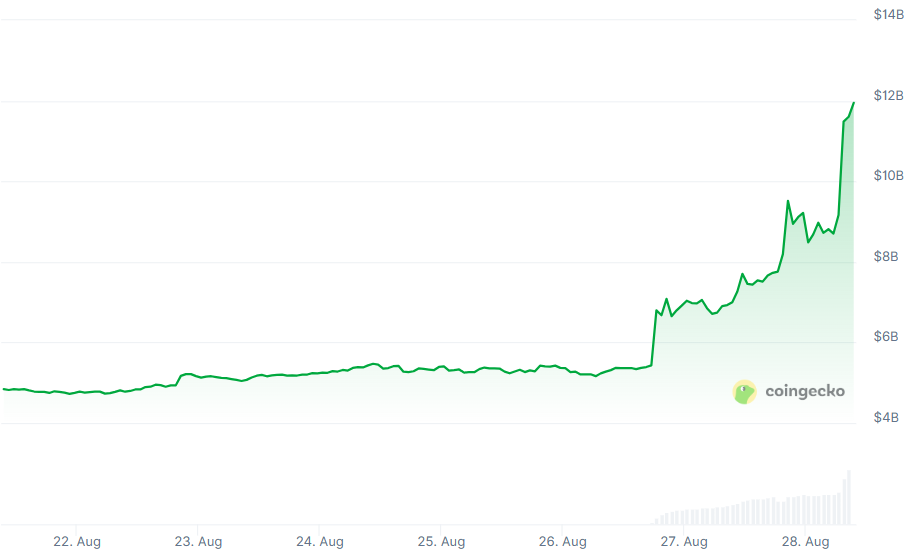 While Cronos's market valuation has jumped to $11.9 billion from $6.8 billion last week, it represents only a small portion of the $3.9 trillion total market capitalization of the global cryptocurrency sector.