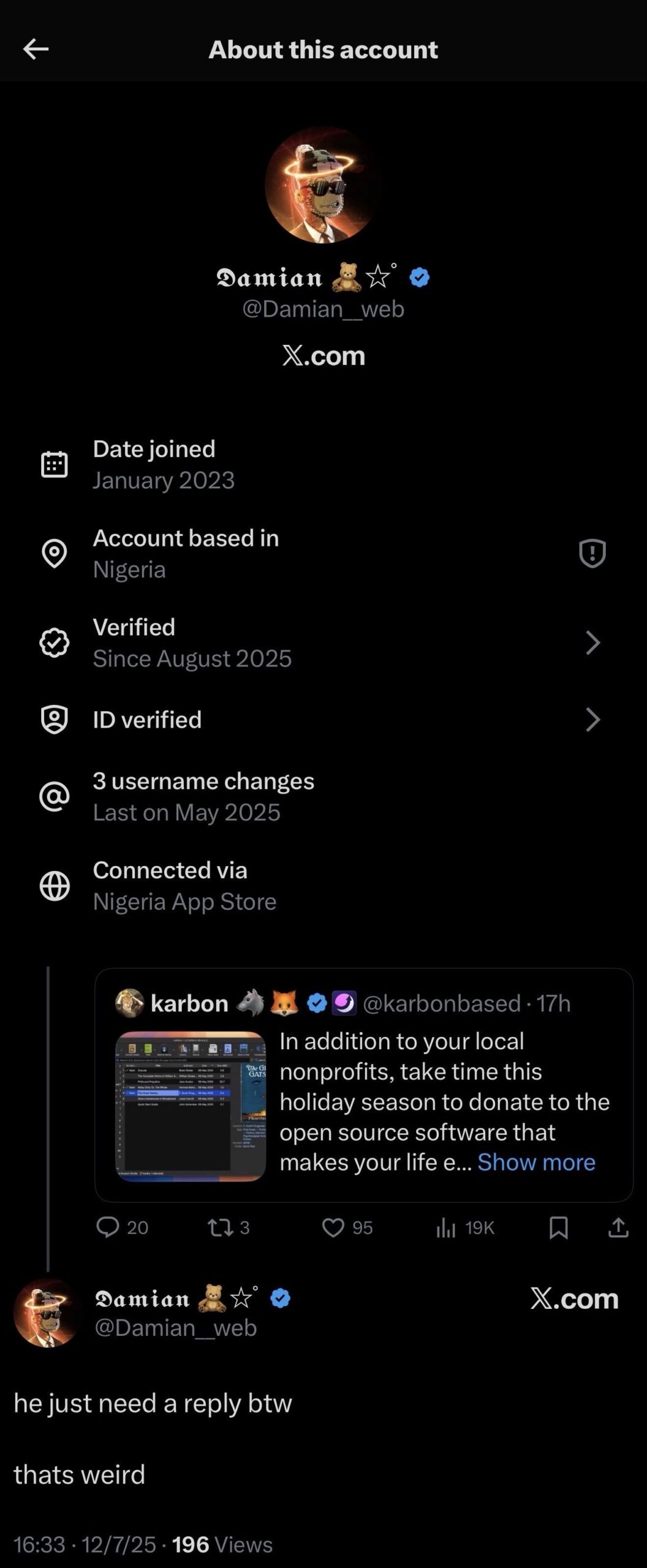 ZachXBT argues even donation threads for open-source projects have been inundated with AI-generated junk content, deeming it unproductive and lacking benefit. He provides an example of an account and post, illustrating the problem with AI bot networks exacerbating the situation.