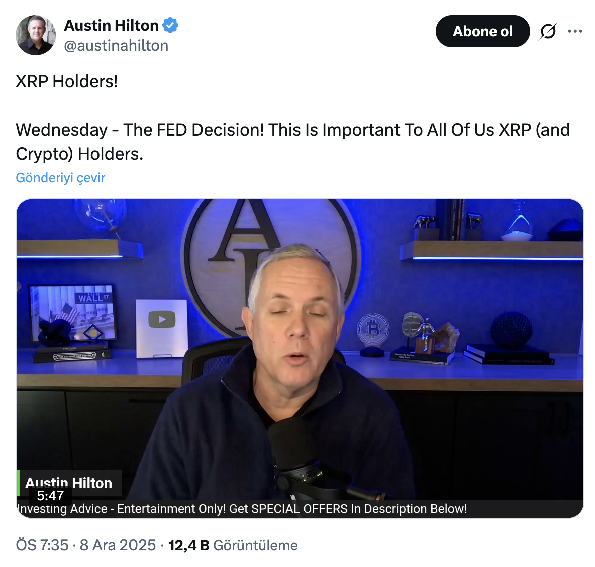 Austin Hilton, a prominent crypto commentator, highlighted a crucial macroeconomic development that has once again redirected the focus of XRP investors towards the US Federal Reserve (Fed) this week. As the anticipation of the interest rate decision to be announced on Wednesday reaches its peak, experts agree that XRP could be directly impacted by this decision.