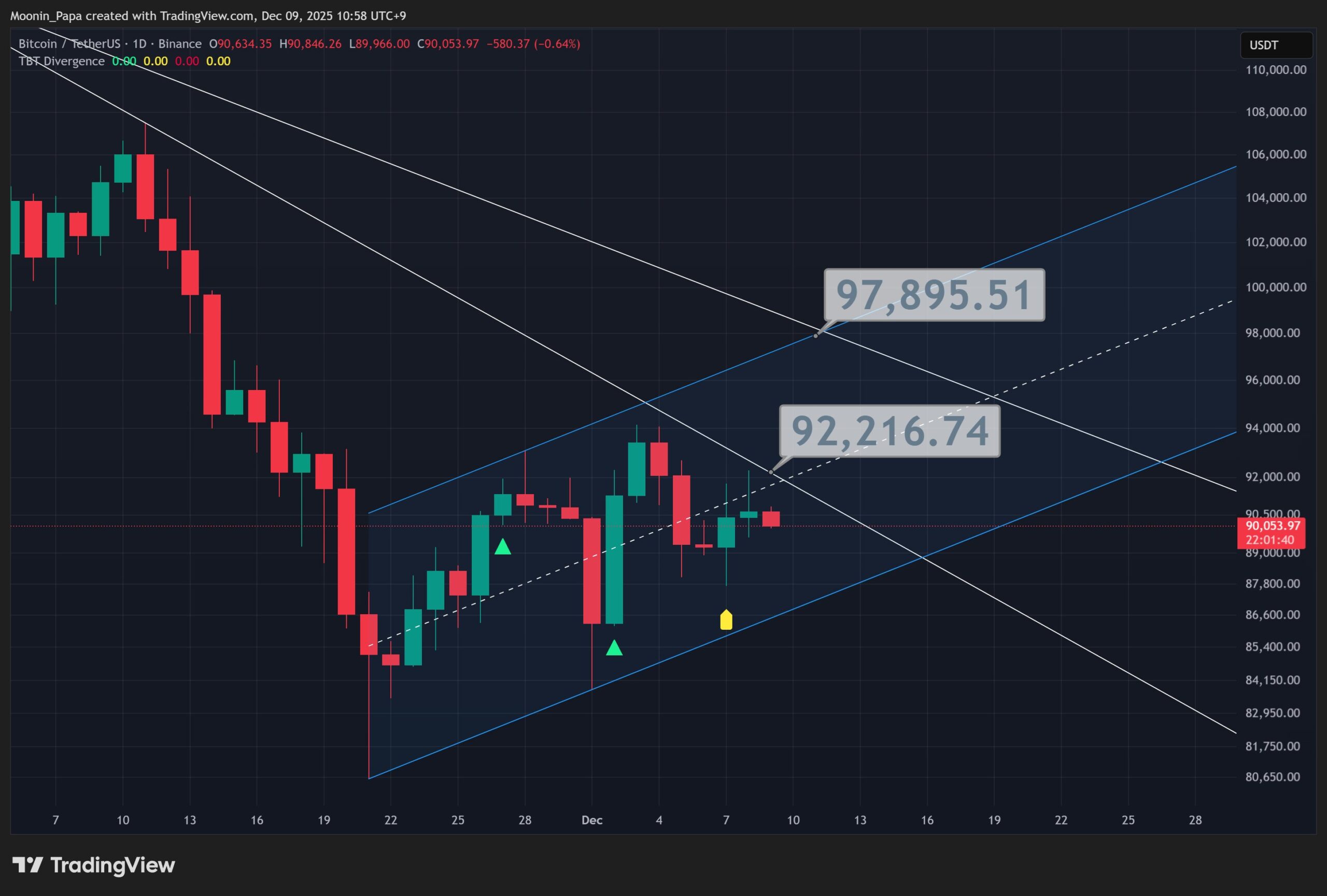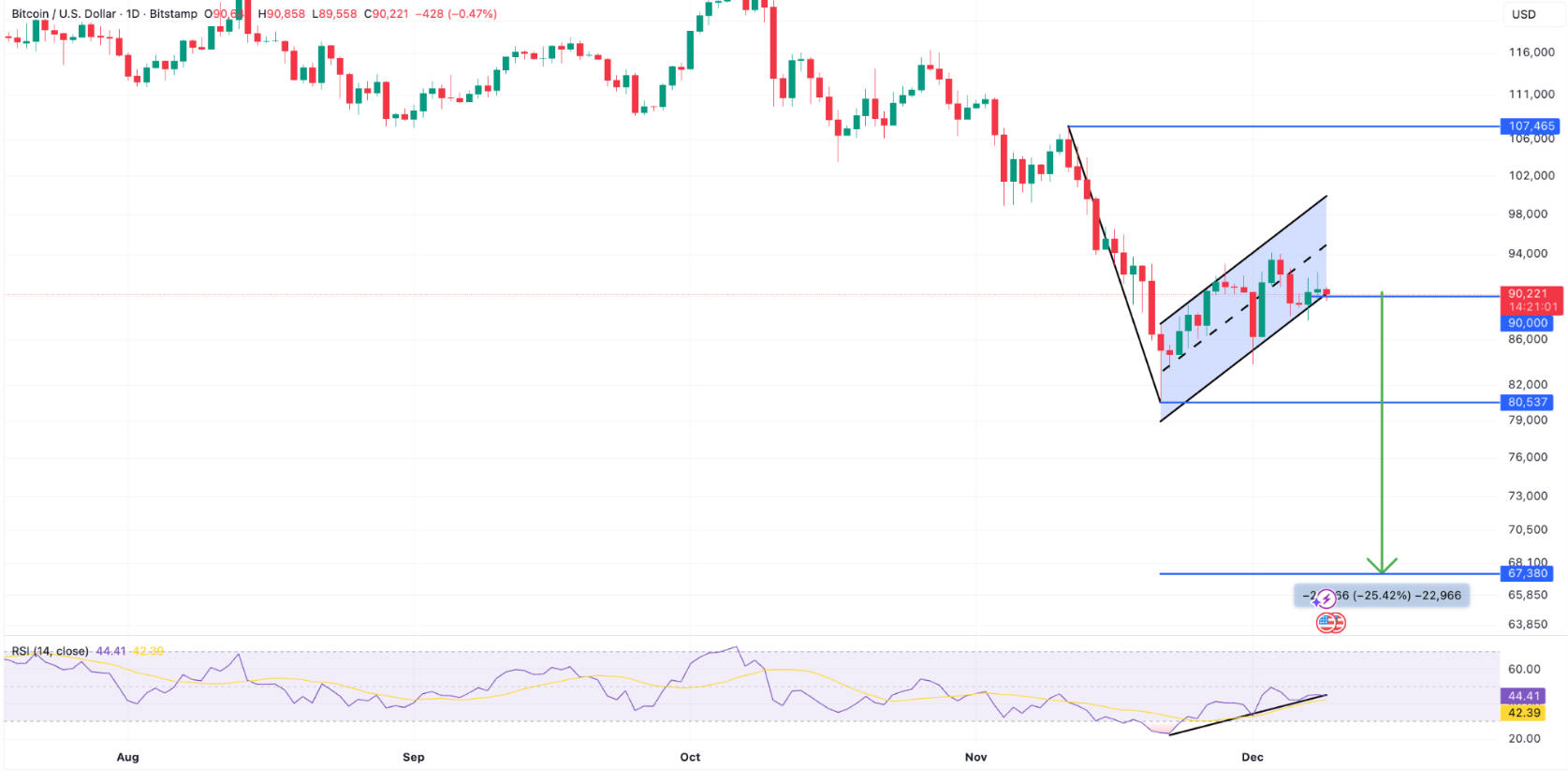 “Bitcoin nearly tested the first resistance zone level yesterday. It continues to remain within the bear flag and is likely to revisit support around $86,000-$87,000. If Bitcoin rises, it will face resistance at $92,216, followed by resistance below the upper bear flag line around $98,000.