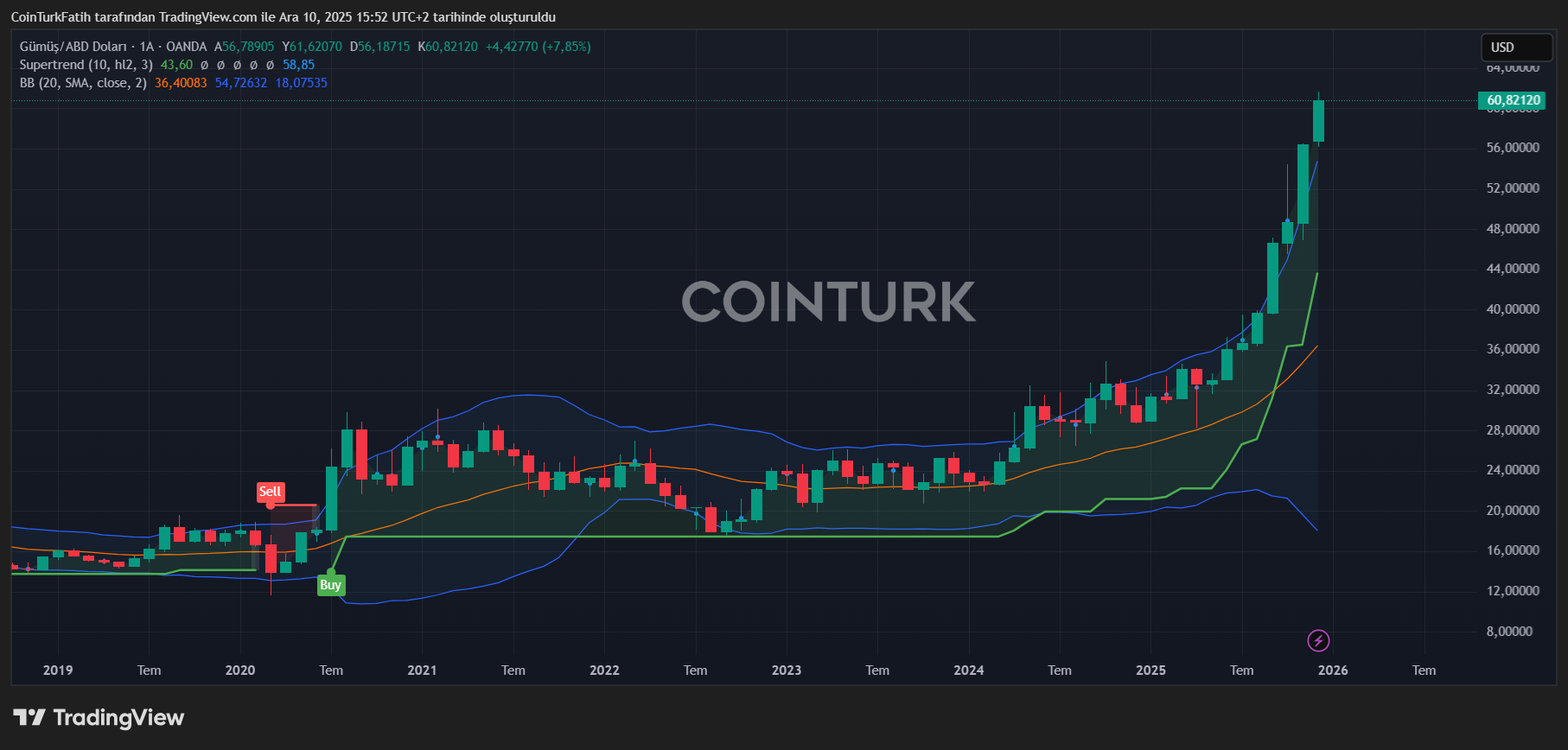 The silver chart resembles the bull peaks of altcoins during an uplift year, but it has outperformed them this year. Drawing the chart to a monthly view in most altcoins reveals a stark contrast to silver’s direction. Although silver attained roughly 90% gains over seven months, it remains above $60.