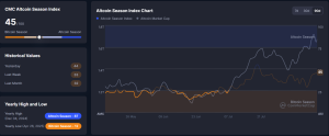The SPX6900 Price stability is partly due to the recent change in market dynamics. The Altcoin Season Index has been rising steadily for nearly 2 months and is at 45, indicating that investors’ sentiment is shifting from Bitcoin and is now increasing in support of altcoins.