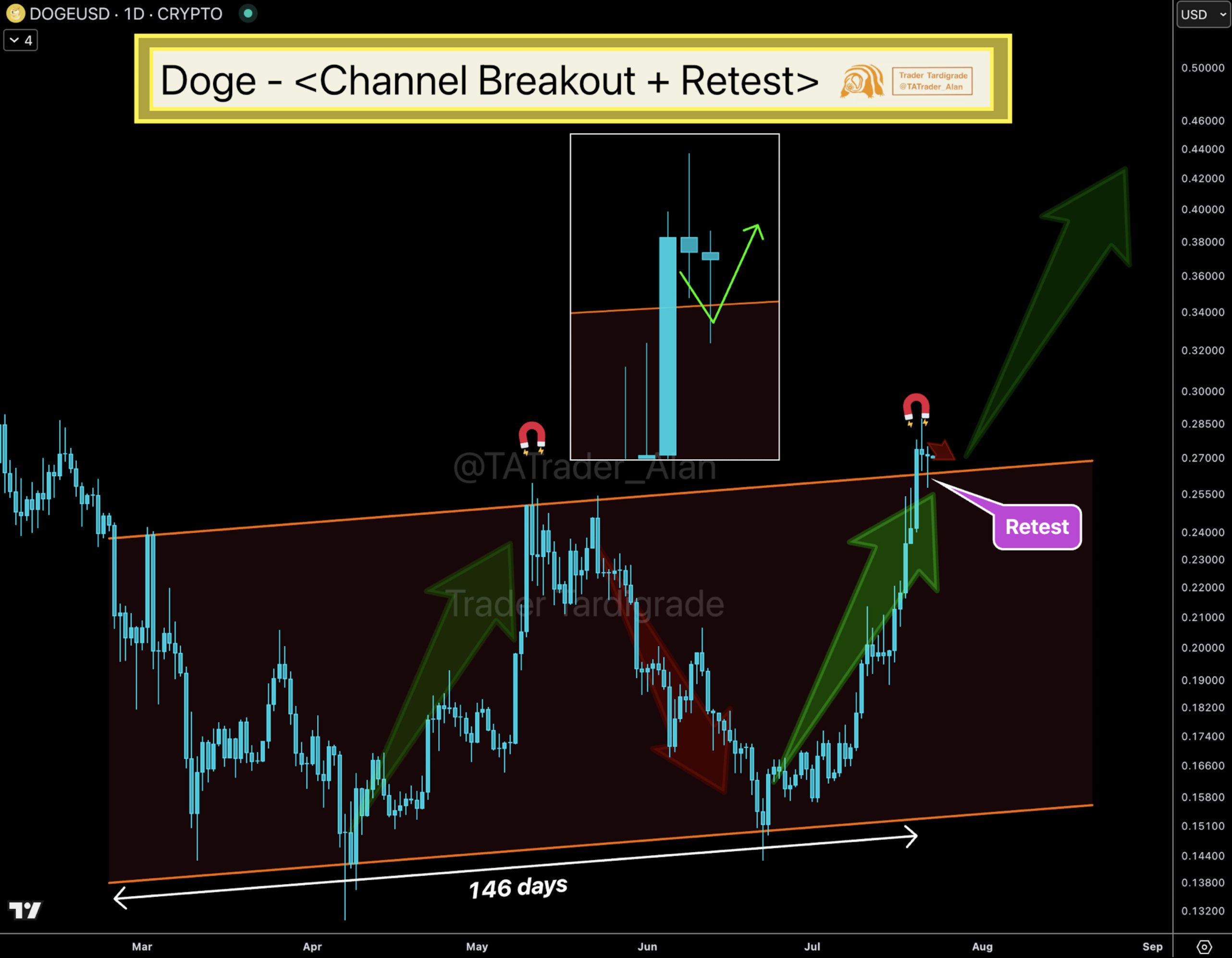Dogecoin Breaks Out: Expert Reveals Next Price Targets as DOGE Retests 146-Day Ascending Channel