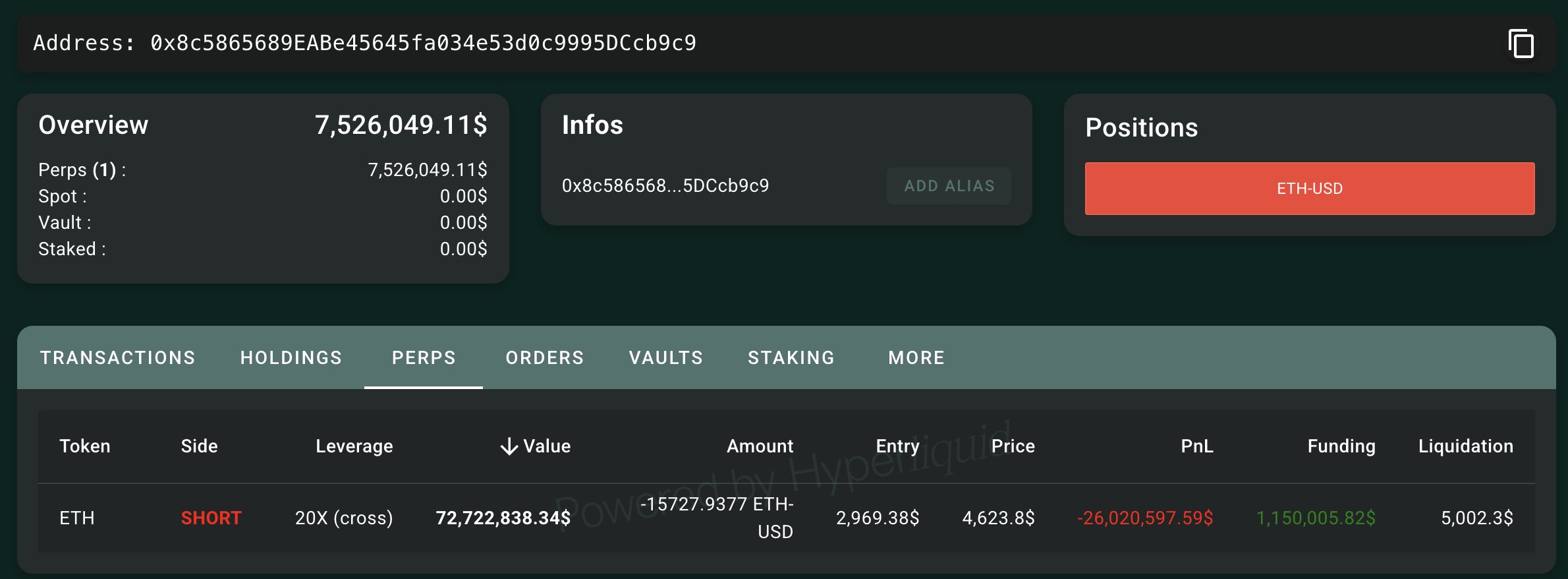 Talk about bad timing. Just as Ethereum rockets upward, one whale gets caught in a brutal 20x leverage trap—now nursing a $26 million paper wound.