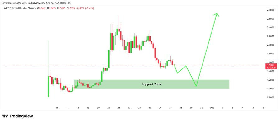 Another analyst, CryptoZee, revealed that investors wait for a dip to enter. He found an important support area around $1.00 to $1.20. This range is considered a competitor entry point. Should Avantis fly out of this region, the price may increase to a goal of $2.70. Such a turnabout WOULD be symbolic of a further upward move, which could lead more buyers to the market.