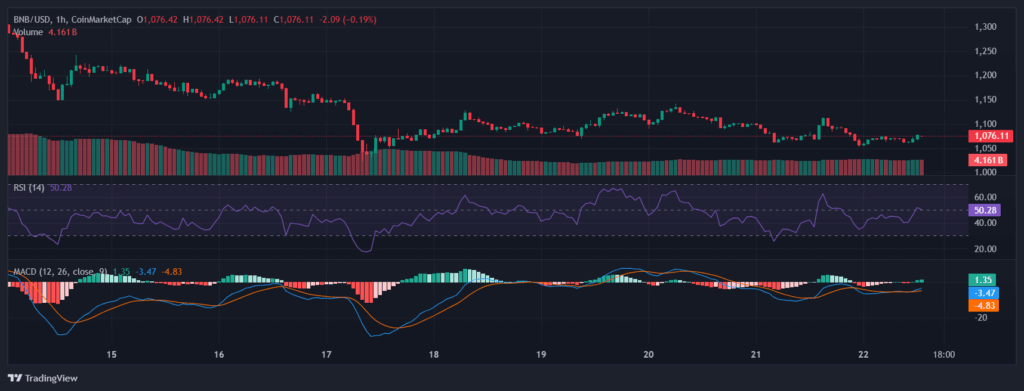 - Currently, BNB Coin is trading at $1,076.11, with an RSI value in the neutral phase.