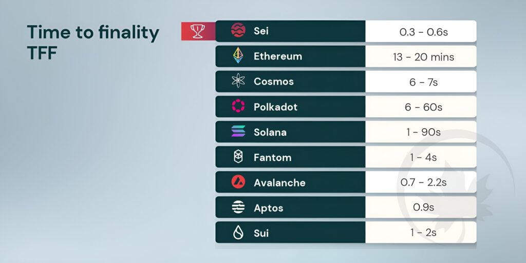 - SEI achieves over 4000x faster time to finality than Ethereum.